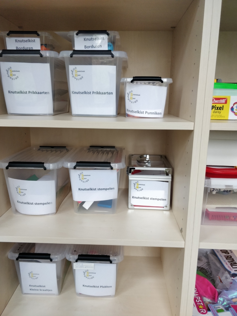 Gedurende het jaar bieden we diverse workshops aan waarbij kinderen een nieuwe creatieve techniek leren. Deze materialen worden daarna toegevoegd aan het knutsel assortiment. Er staan ongeveer 40 knutselkisten in de uitleen.